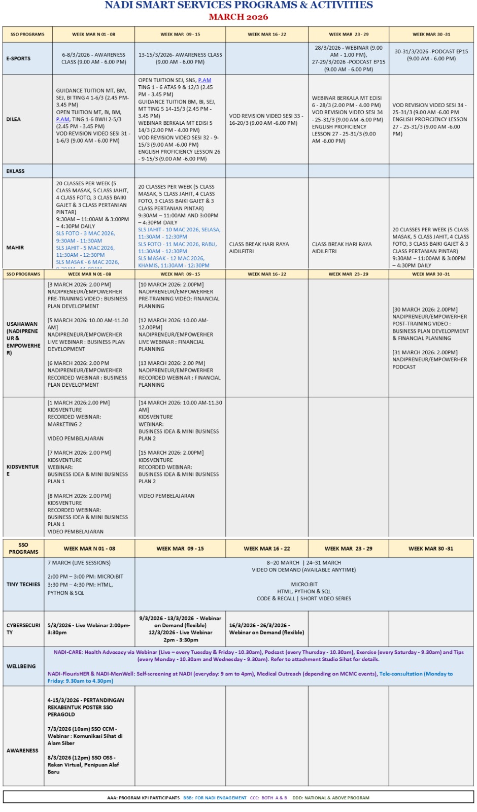 Tarikh : 12 Mac 2026 Masa : 2.45 petang – 3.45 petang Lokasi : NADI Kg Layout Peserta : 4 orang Tujuan Memberi pengenalan kepada peserta tentang program khas NADI-Nurture Dilea yang akan disertai oleh pelajar secara atas talian. Menyediakan bimbingan […]