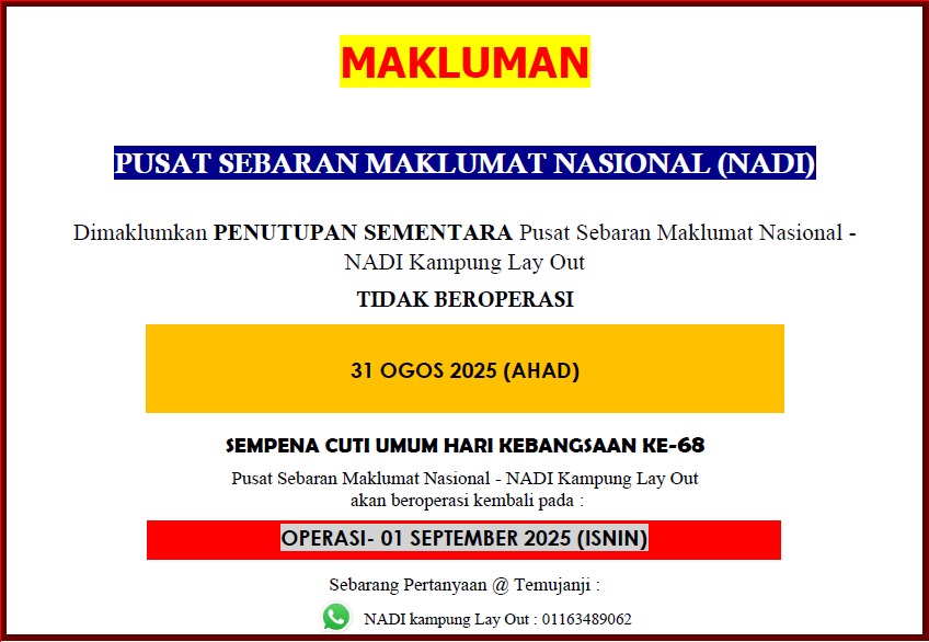 NOTIS PENUTUPAN SEMENTARA NADI SEMPENA CUTI UMUM HARI KEBANGSAAN